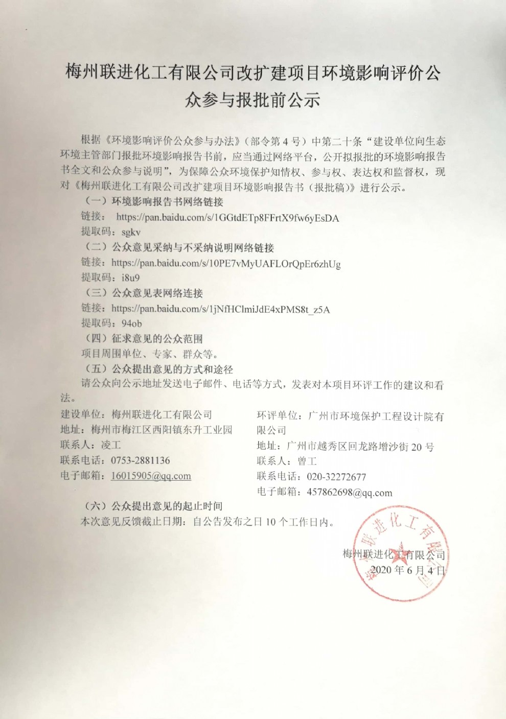梅州聯(lián)進(jìn)化工有限公司改擴(kuò)建項(xiàng)目環(huán)境影響評價公眾參與報批前公示